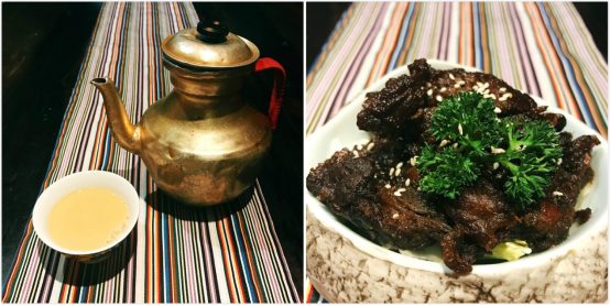 广州的藏族餐厅并不多,这家最为正宗且西域特色浓郁。一路播过转经筒,长着两根彩色大辫子的古朴大门自动打开,光线骤暗,满眼皆是民族元素的异域情调。