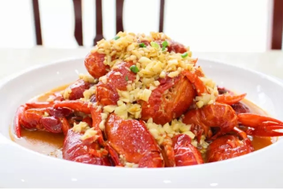 如果你受不了辣,那就尝一下“蒜香小龙虾”。虾黄蘸上了蒜粒,又甜又开胃。