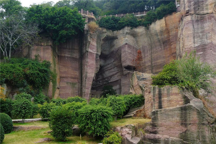 莲花山石景区,是自西汉始创、具有二千多年历史的古采石场遗址,悬崖峭壁,奇岩异洞,鬼斧神工,以"人工无意夺天工"的石景奇观闻名于世,是国内仅见的" 人工丹霞"奇迹。它与湖北大冶古铜矿遗址并称为我国两大古矿场,于2001年被国务院评定为第五批全国重点文物保护单位。