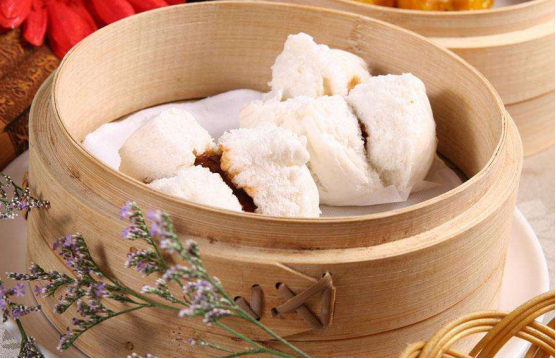 叉烧包的面皮是用北方常用的发酵面团经过改进而成的。包制时要捏制成雀笼形,因为发酵适当,蒸熟后包子顶部自然开裂,实际是一种带有叉烧肉馅的开花馒头。其皮色雪白,肉馅香滑、甜咸适口,滋味鲜美。