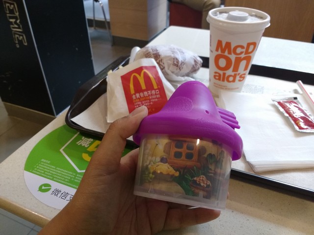 Okay so this was actually a mistake. I got so used to ordering food in China by pointing at pictures in menus. So much so, that, when I was presented with an English menu at Mc Donald¡¯s, I instantly pointed to a picture and ordered. It just so happened that it was a happy meal and I got ¡°stuck¡± with this purple smurf house. Actually, I love the smurf decor in all Mc D¡¯s there and now, also my beloved smurf house so I would recommend you to go and order a happy meal just to get this cute house. Trust me, no one will judge you for it.