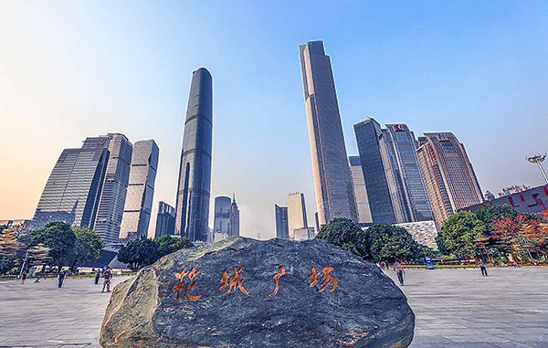 Huacheng Platz ist bekannt als das "Stadtwohnzimmer" von Guangzhou, ist der gr??te Platz in Guangzhou, es befindet sich am Kernknoten der Zhujiang New Town, der neuen zentralen Achse der Stadt Guangzhou. Der Gesamtplan umfasst eine Fl?che von etwa 560 Tausend Quadratmetern, mehr als 600 B?ume und alte B?ume sind derzeit gepflanzt, etwa zwei Kilometer lange Fu?g?ngerpromenade und erstreckt sich über eine Fl?che von über 15 Tausend Quadratmetern von Fudao See. Es gibt 39 Geb?ude in der Umgebung, dazu geh?ren die neue Bibliothek von Guangzhou, das gro?e Theater von Guangzhou, das neue Museum der Provinz Guangdong, der zweite Kinderpalast in Guangzhou, das Finanzzentrum von Zhou Dafu in Guangzhou, das internationale Finanzzentrum von Guangzhou usw.