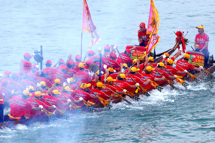 La Raza del Barco del Dragón durante el Festival(5 de mayo en el calendario lunar) es una costumbre tradicional que tiene como objetivo proteger a las personas de la maldad y enfermedad. Los participantes de pueblos cercanos se reúnen en el río Perla Guangzhou ese día con el objetivo de ser el primero. El ganador será recompensado con dinero, oro, cerdo, asado y bono. Guangzhou alberga un barco de raza del dragón internacional cada a?o, atrae a cientos de concursantes